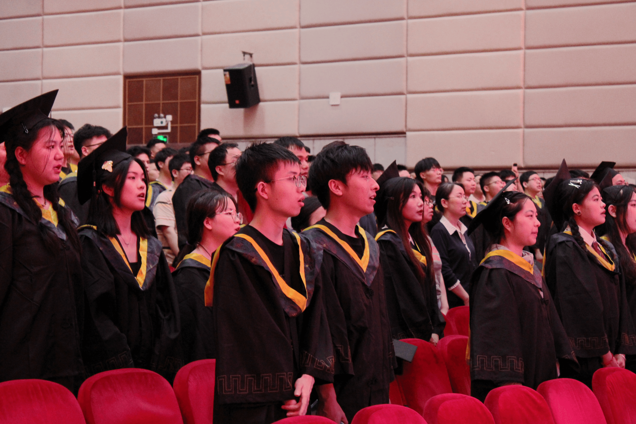 毕业典礼在庄严的国歌声中拉开序幕。