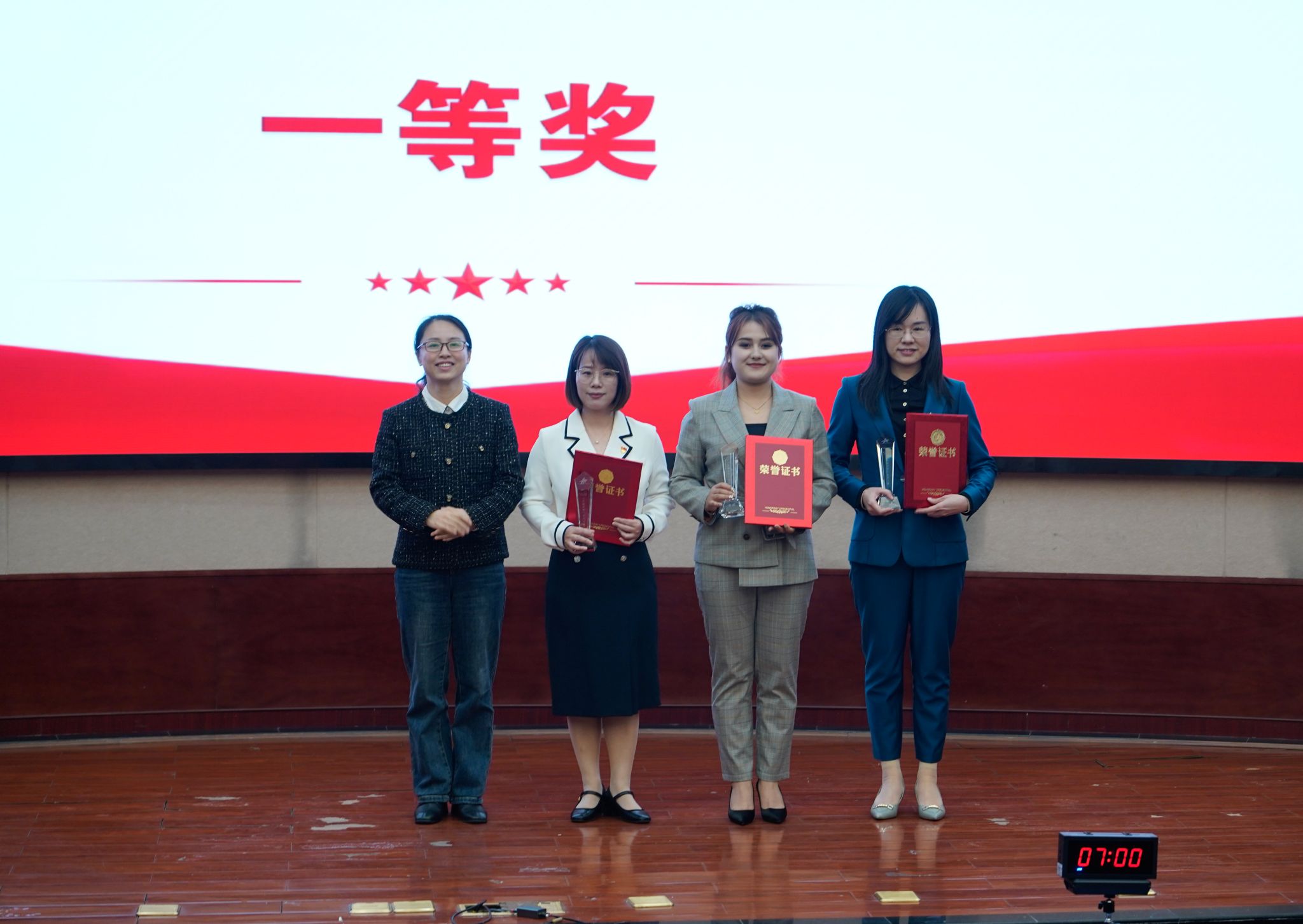 校党委组织部部长陈沈平、宣传部部长杨东明为获奖选手颁奖