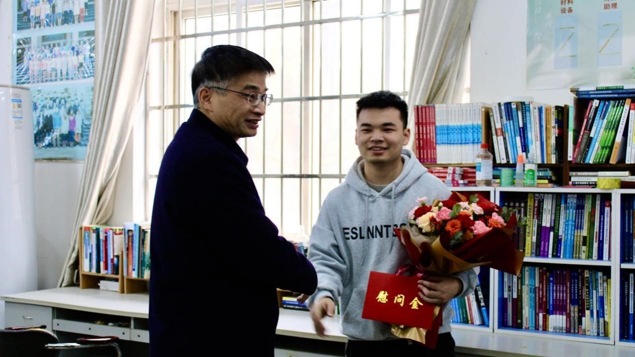 1月11日,柳和生书记莅临我院,亲切慰问了教师代表柳凌峰,对他在教学和科研工作中所做出的杰出贡献表示衷心的感谢,并勉励他继续勇攀科研高峰,不断突破自我,力争在新的一年里取得更加辉煌的成绩。