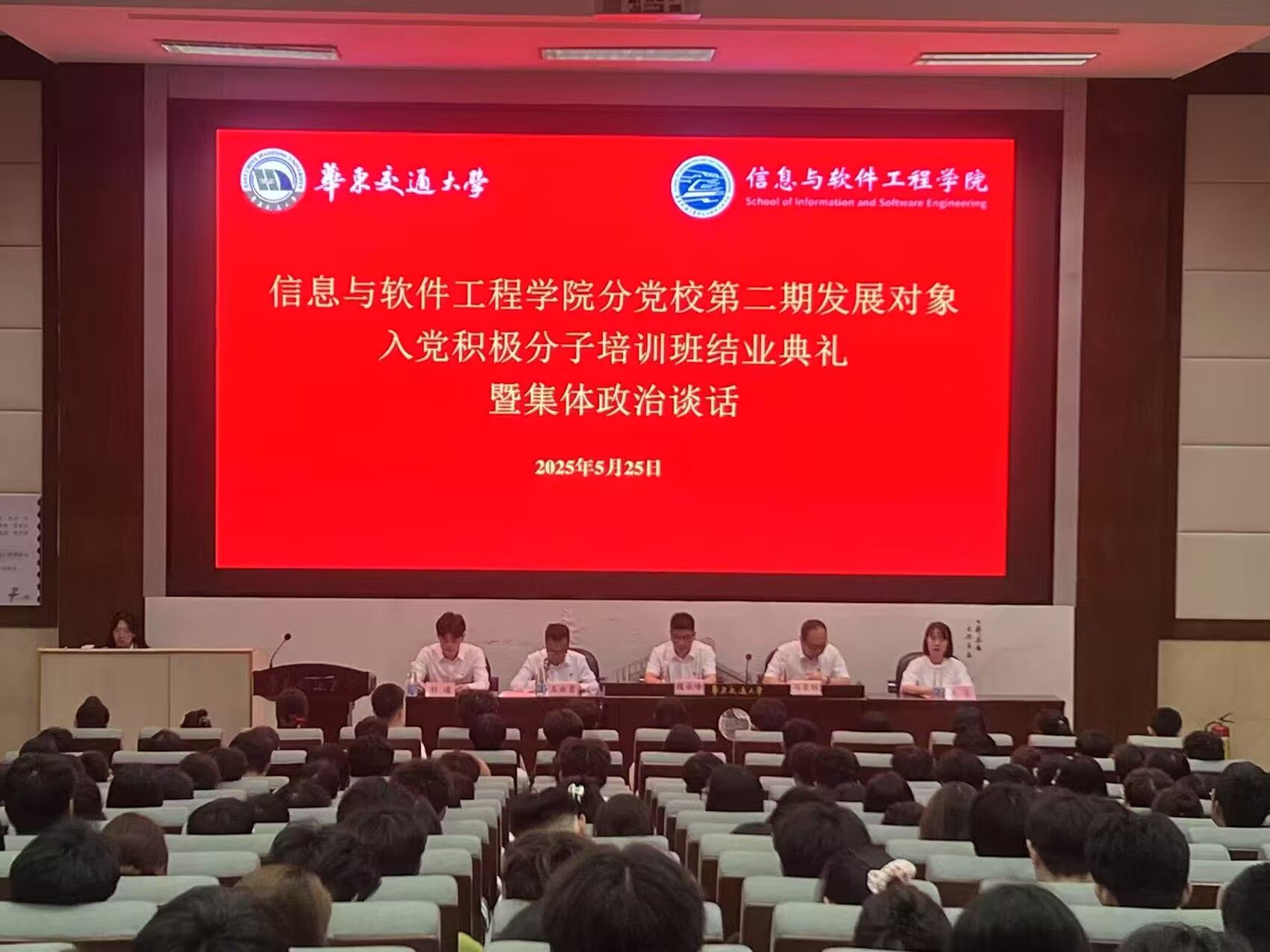 5月25日,yl6809永利官网集团于南区图书馆202举行第二期发展对象、入党积极分子培训班结业典礼暨集体政治谈话。学院党委书记、分党校校长魏永峰,党委副书记、分党校副校长冯荣刚出席典礼,院党委委员、党委组织员、培训班班主任王业贵主持,院党委组织员、创新创业学生党支部书记黄芳,院党委兼职组织员、软件第一学生党支部书记刘通,发展对象及入党积极分子全体学员参加。
