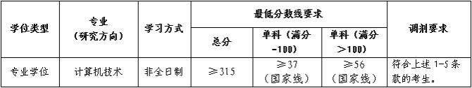 (5)计算机技术(非全日制)调剂要求考生一志愿报考专业与计算机技术专业相同或相近。