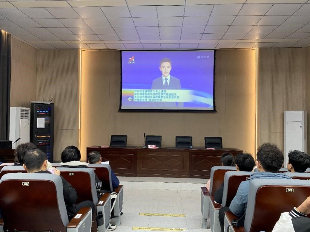 会上,全体参会人员集中观看了全省教育大会精神相关视频,各支部、班级代表根据学习主题和内容进行交流发言。