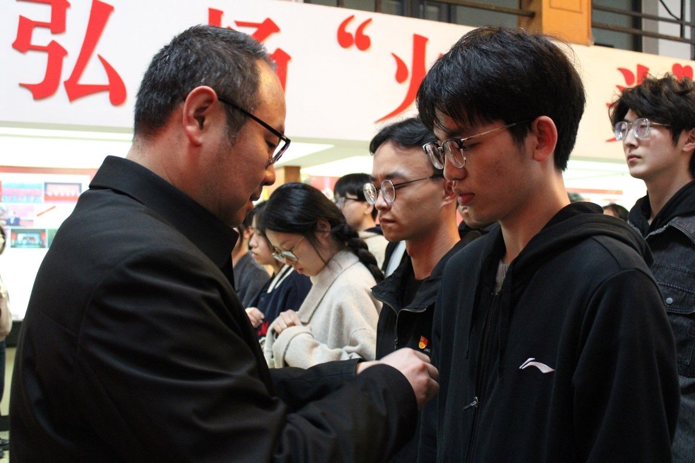 冯荣刚为新发展党员代表佩戴党徽并提出殷切期望。他指出,新发展党员要提高政治站位,坚守初心使命,端正奋斗姿态,赓续实干精神,注重知行合一,锤炼青春本色;要以此次宣誓为动力,立足本职、勇担使命,用实际行动践行入党誓词,成长为堪当民族复兴重任的时代“芯”青年。