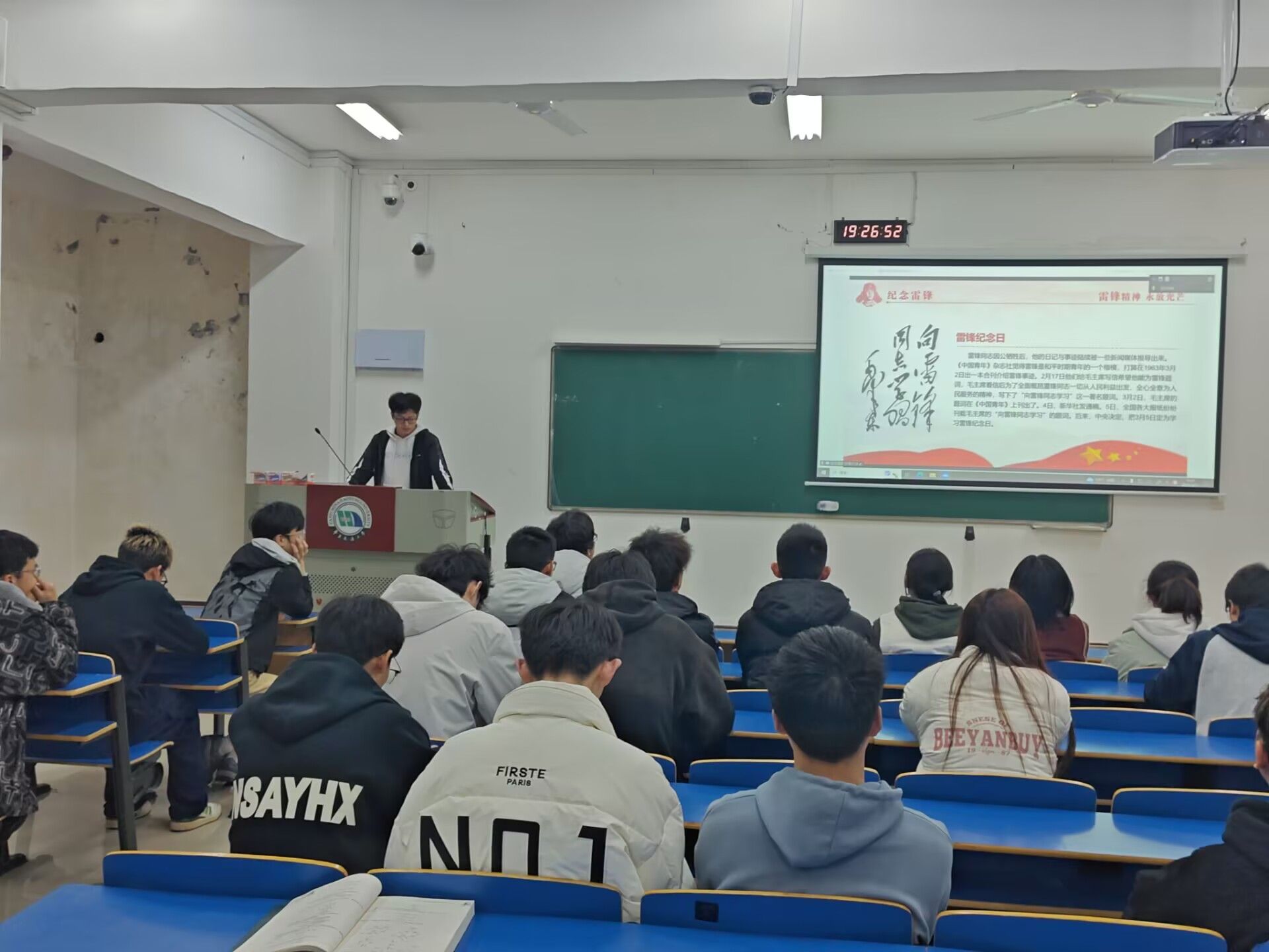 活动中,主持人梁祺聖依托详实史料,系统梳理了雷锋同志从普通士兵到时代楷模的成长轨迹,特别以中央档案馆公布的毛泽东同志“向雷锋同志学习”题词手稿、周恩来同志关于雷锋精神的“四点论述”批示文件为切入点,结合《雷锋日记》原稿影印件和系列珍贵老照片,生动阐释了“爱憎分明的阶级立场、言行一致的革命精神、公而忘私的共产主义风格、奋不顾身的无产阶级斗志”的深刻内涵。