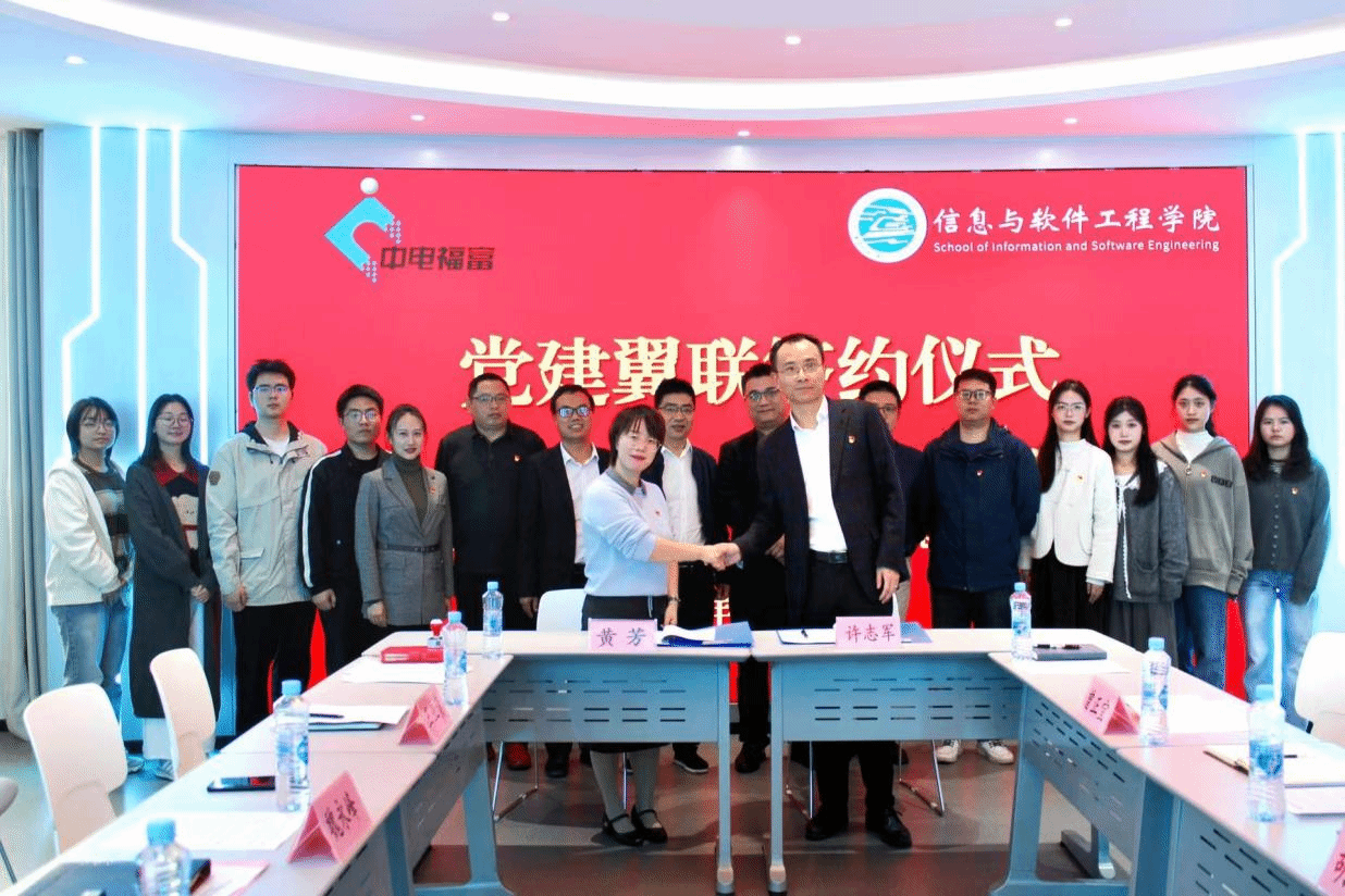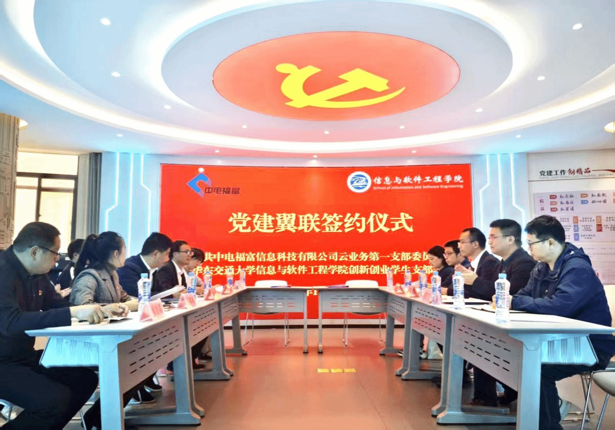 11月11日下午,yl6809永利官网集团创新创业学生党支部与中电福富信息科技有限公司云业务第一党支部在yl6809永利集团“火车头”党建活动中心举行党建共建签约仪式。学院党委书记魏永峰出席仪式并讲话,院党委委员、组织员王业贵,组织员、创新创业学生党支部书记黄芳,党支部副书记、实验中心与院双创中心副主任黄德昌;中电福富信息科技有限公司云业务第一党支部书记、高级副总监许志军,青年委员、交付部总经理胡飞飞,纪检委员、云运营产品部总经理曾正宜,宣传委员、云运营产品部副总经理郭永该以及双方党员代表参加仪式。仪式由学院团委书记李萌萌主持。