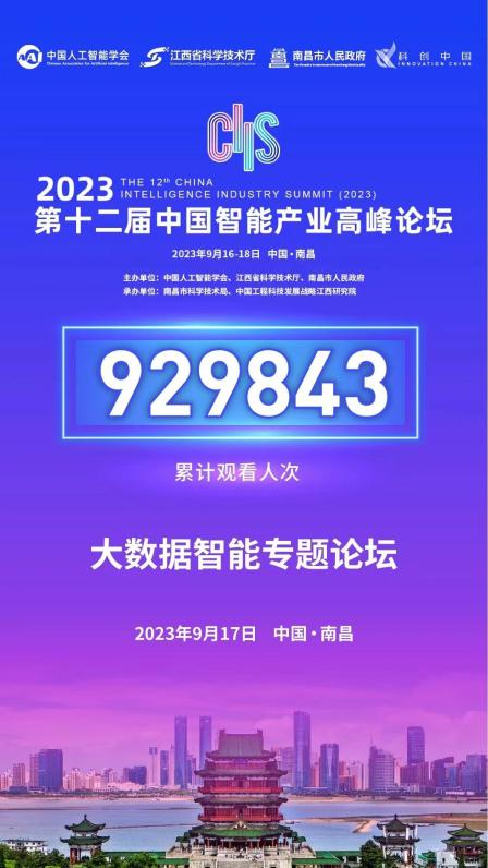 2023年9月16–18日, 2023第十二届中国智能产业高峰论坛(CIIS 2023)在江西南昌隆重举行。大会由中国人工智能学会、江西省科学技术厅、南昌市人民政府主办,南昌市科学技术局、中国工程科技发展战略江西研究院承办。此次高峰论坛设有21场专题论坛,围绕大模型、元宇宙、无人系统、计算机视觉、行业智能化、教育生态、数字安全等议题,包括赵春江院士、张勤院士、田奇院士、关存太院士、许彬院士、吴信东院士在内的,近200位业界学者专家和各行业嘉宾进行了成果分享和观点交流,带来了130余份精彩报告,吸引了线上线下超千万人次观会。