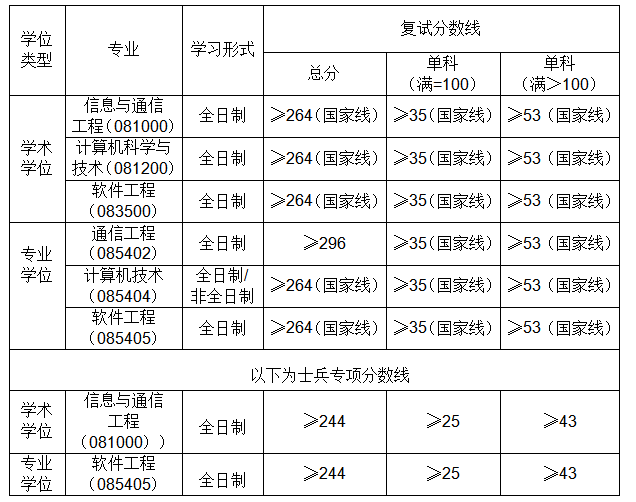 一、一志愿复试分数线基本要求