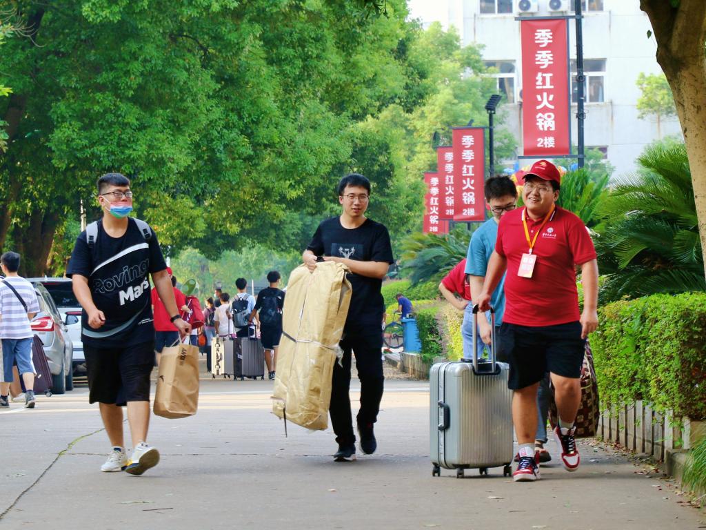 为让21级新生在入校后能够更加快速方便的办理入学手续,9月4日学院组织了迎新志愿者,在南区校门口以及新生大巴各站点接站,引导新生登记,帮助新生拿行李。