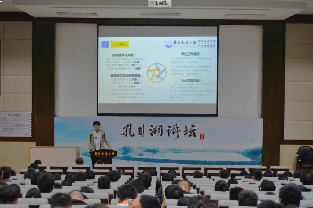 四位品学兼优的18级同学为大家介绍了自己的学习、生活,为其提供了宝贵了参考意见。18级计算机2班范文超谈了自己这四年来科创竞赛方面取得的成绩,并分享了他在各个项目中所收获的经验。他认为,项目经历很重要,无论项目大小,只要能在其中锻炼自己的能力就是值得的。