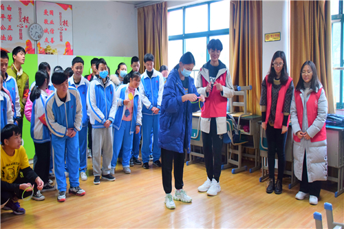 志愿者带领启音学校学生做互动游戏。“运输糖果”环节,启音学生们脑洞大开,将盘子折成不同的形状,协力运送糖果;“背夹球”环节,同学们二人协作、合力运球;“丢圈圈”环节,信息志愿者与启音学生一同较量。压轴项目“绘画彩蛋”环节,志愿者在气球上写下祝福,送给启音学校的学生,让短暂的美好长久驻留。