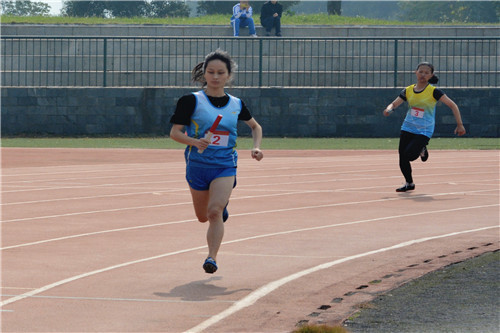 赛道上,林雅丽尽力奔跑