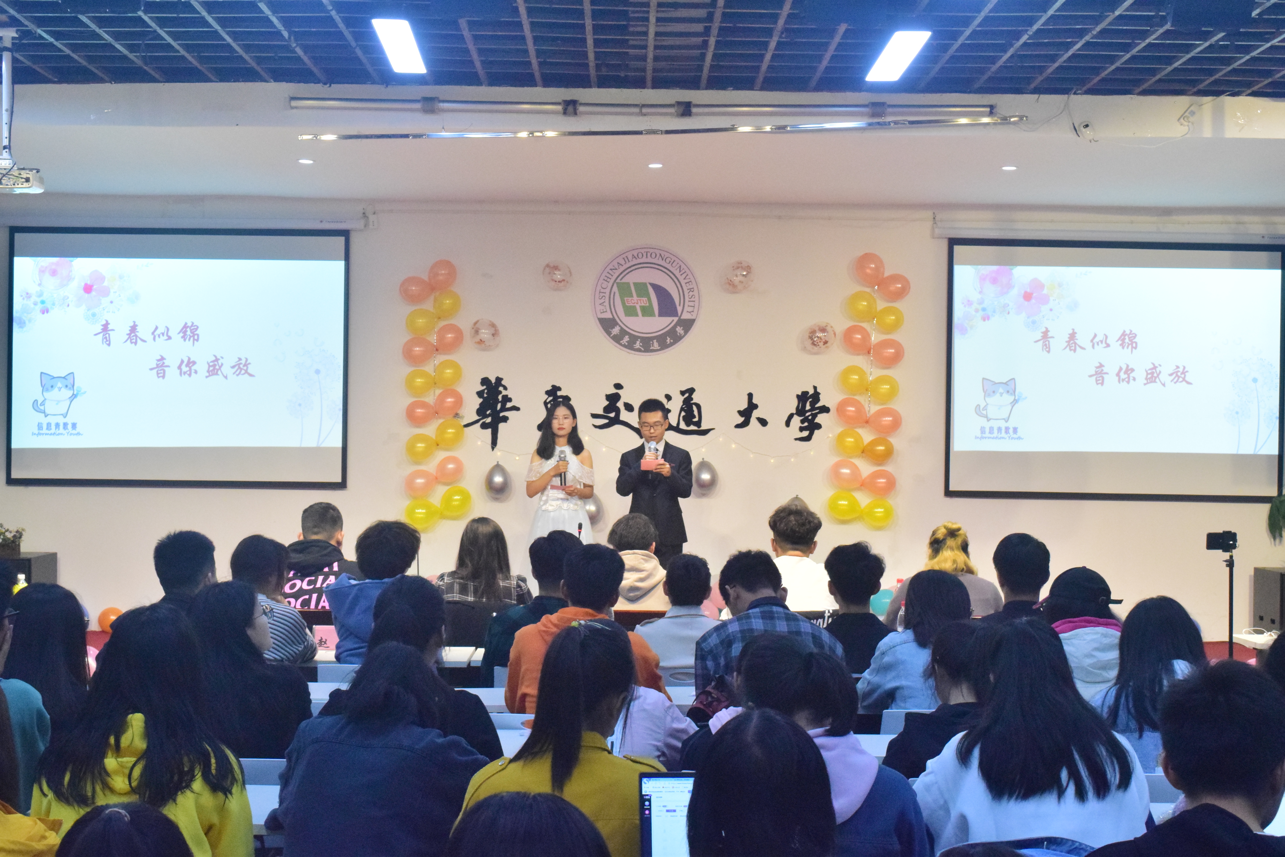 为丰富学生大学生活,鼓励学生展现自我、热爱生活,10月26日,信息学院于大学生活动中心三楼举办“青春似锦,音你盛放”青歌赛决赛。到场嘉宾有学工办副主任兼团委副书记杨青,第五届文工团团长陈宝林、赵毅,信息学院19级带班党员以及信息学院学生会第十八、十九届主席团成员。