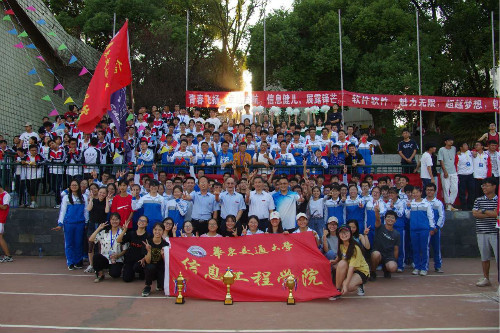 我院最终以47分的成绩位列团体总分第10名。万明书记、罗玉峰校长、信息学院党委副书记何仲坚、信息学院团委书记陈文锦同信息学院运动员及工作人员合影,望运动员继续努力,来年再创佳绩。