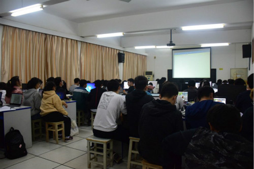 本次培训从第四周开始,到第八周结束,培训内容包括编程、硬件、文档写作、PPT制作等。第一次培训课上,授课老师细心讲解编程语言语法知识及循环结构,让同学们自己动手编写程序并耐心答疑,使同学们在这个较为新鲜的领域保持着充足的好奇心,对语法知识有更深入的了解。