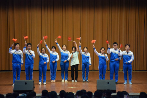 队员们挥动国旗演唱《歌唱祖国》