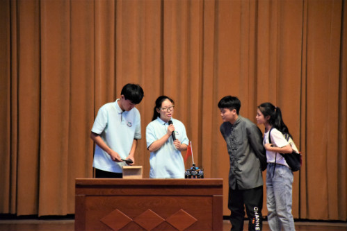 “爷爷您好,我们是yl6809永利集团暑期三下乡社会实践代表团的成员,这是我们科技展的作品。”摊位上的遥控小车吸引村民驻足围观,村头的爷孙俩聆听着队员们的讲解,并不时点头。小车配备红外探测技术,能够处理分析周围路障情况并迅速进行躲避。在队员的指导下,爷孙俩也亲手体验了现场的科技产品。