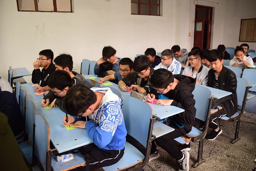 参观校史馆结束后,于教6栋215举行“我的大学,我的梦”主题班会,分为校史知识抢答、感悟发言、书签梦想三个环节。“我校的建校时间是?”、“学院办学指导思想是什么?”同学们纷纷积极举手,踊跃答题,现场气氛热烈。在“感悟发言”环节中,新转专业来的吴丹新同学表示,“当时我高考填报的第一志愿是就是计算机科学与技术专业,虽然当时没能被这个专业录取,但在自己的努力下,现在重新和理想并肩。”