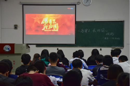 五四青年节尚未走远,为激发广大青年的爱国热情,树立同学们的道路自信心、理论自信心和制度自信心,5月7日,17通信一二班于逸夫楼109室组织学生集中观看热血“青春剧”——大型爱国主义题材纪录片《厉害了 我的国》。