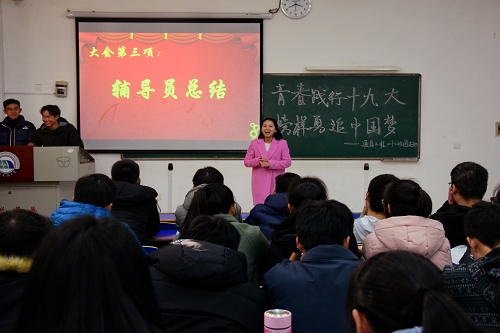 为了贯彻落实习近平总书记讲话精神,结合实际学习生活,认真领会十九大精神,提高团员思想觉悟。12月22日,17级通信二班于逸夫楼104举行了一场以“青春践行十九大,榜样勇追中国梦”为主题的团日表彰大会。团委副书记兼学工办副主任杨青出席了本次大会。