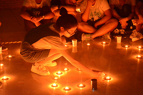 参与者通过拼图游戏分组并完成团队任务“蒙眼吹气球”后,工作人员为大家拿来了便签纸。在悠扬舒缓的音乐中,“划掉谁的名字”环节开始进行。在本环节中参与者需写下他们生命中重要的五个人的名字,再依次划去,直至还剩两人。划去名字就意味着失去那个人,每划去一个名字后大家都依次说明划去的是谁并讲述与她/他有关的故事。一时间大家纷纷陷入有笑有泪的回忆中,体会“珍惜”的重要性。