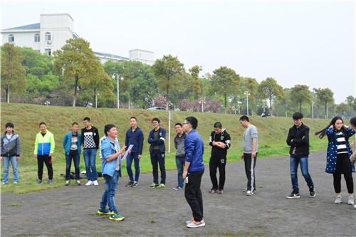 活动进行分组后,每组由不同班级学生组成,男生,女生或围成一圈,或排成几列,分别进行了“母鸡快跑”,“铁索连环”,“木头人”等有趣的素拓游戏,随着游戏的进行,围观学生呐喊,嬉笑,将青春的朝气和不服输的精神展现得淋漓尽致。