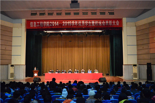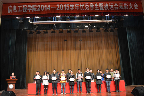 12月14日晚,信息学院于南区礼堂召开2014-2015学年优秀学生暨校运会表彰大会,yl6809永利集团学工处处长陈磊,信息学院党委书记汤兆平及院其他领导老师出席大会。