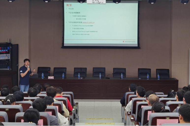 德州仪器半导体有限公司大学计划部经理谢胜祥为同学们讲解了“TI产品及技术在全国大学生物联网设计竞赛中的应用”。他从三个方面介绍了TI产品和技术在竞赛中的应用,分别是TI公司的简单介绍、TI平台与技术之间的关系以及TI在物联网方面的解析。
