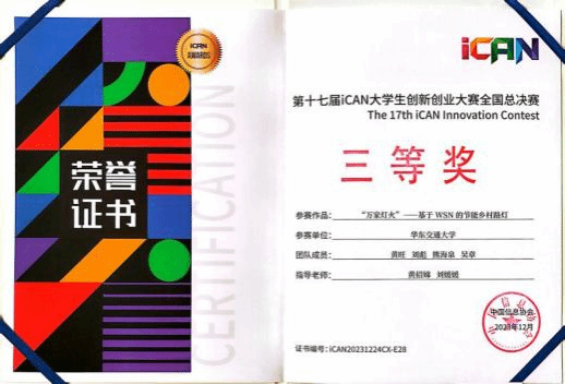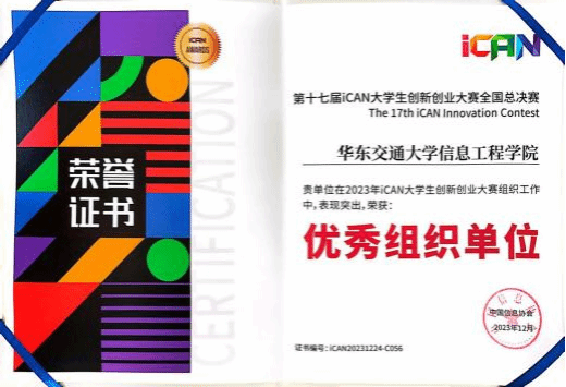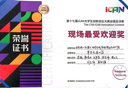 2023年12月22-24日,第十七届iCAN大学生创新创业大赛全国总决赛在北京·奥林匹克塔成功举办。大赛分为创新、创业与挑战三个赛道,通过校赛、分赛区比赛和全国总决赛的三个阶段选拔,覆盖1241所高校,吸引了来自185074名学生的10380个参赛项目。最终,499支优秀队伍晋级,2000余人齐聚奥林匹克塔,进入全国总决赛,共同见证这场青年原创的奥林匹克盛会,经过激烈角逐,我院荣获三等奖2项,以及最佳人气奖,我院荣获“优秀组织单位”殊荣。