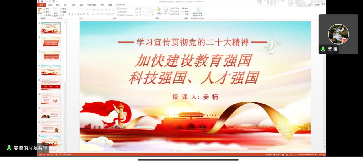 5月24日上午,院党委委员、副院长姜楠为计算机科学与技术研究生党支部授专题党课,共同重温二十大报告。计算机科学与技术研究生党支部支部书记艾国金主持。
