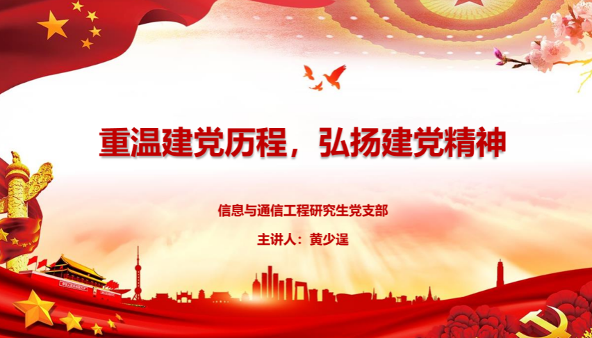 7月1日,在中国共产党成立102周年之际,信息学院信息与通信工程研究生党支部于线上开展“重温建党历程,弘扬建党精神”主题教育庆祝建党102周年,党支部书记黄少逞主持会议,全体党员到场。