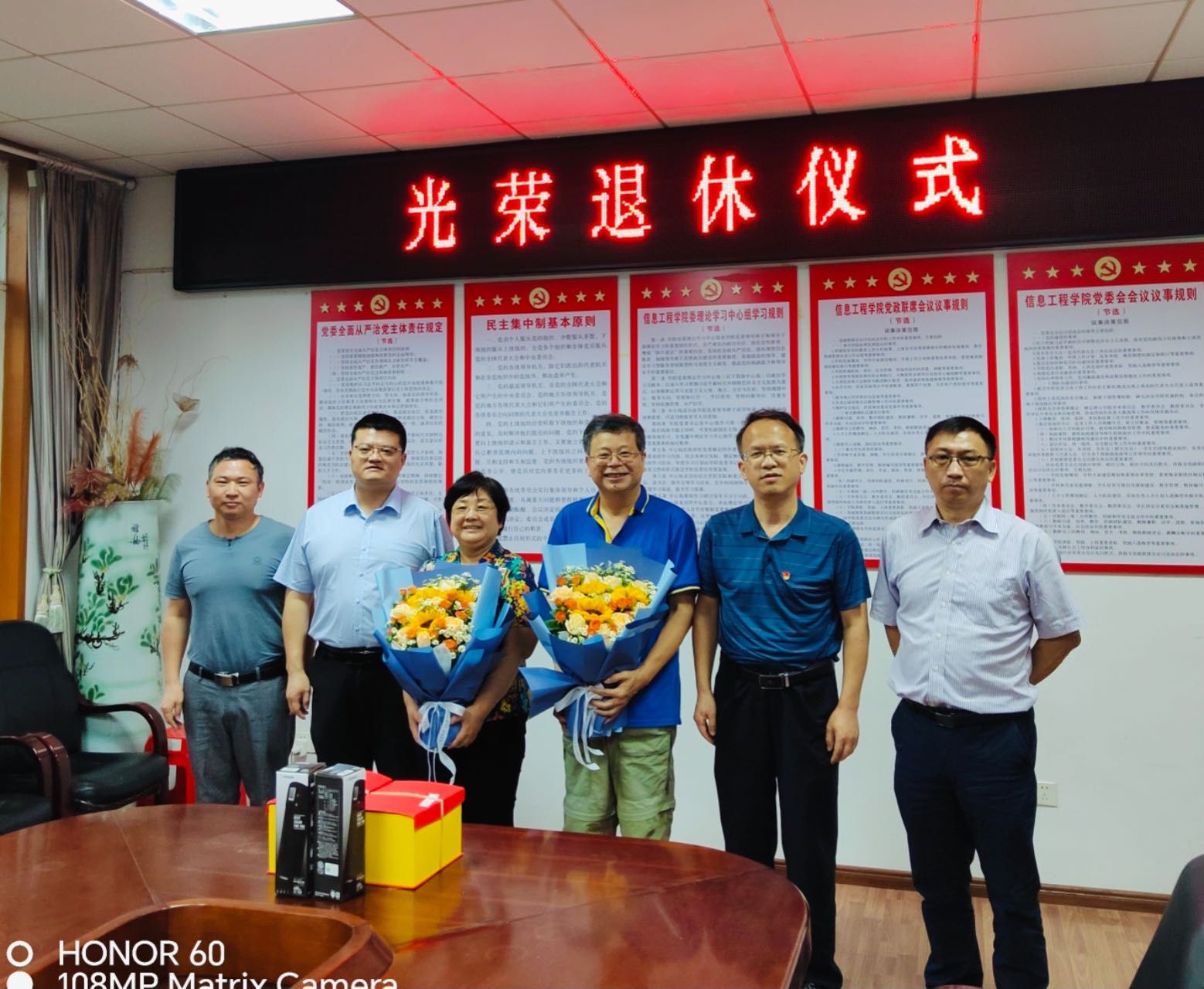 5月21日,甘岚、王更生两位教授荣退仪式在信息工程学院会议室举行,院领导班子成员出席仪式,院党委书记何仲坚主持荣退仪式。