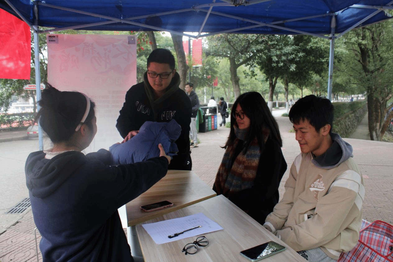 11月25日下午至26日,信息工程学院青年志愿者协会在南区一食堂对面开展旧衣物捐赠活动。