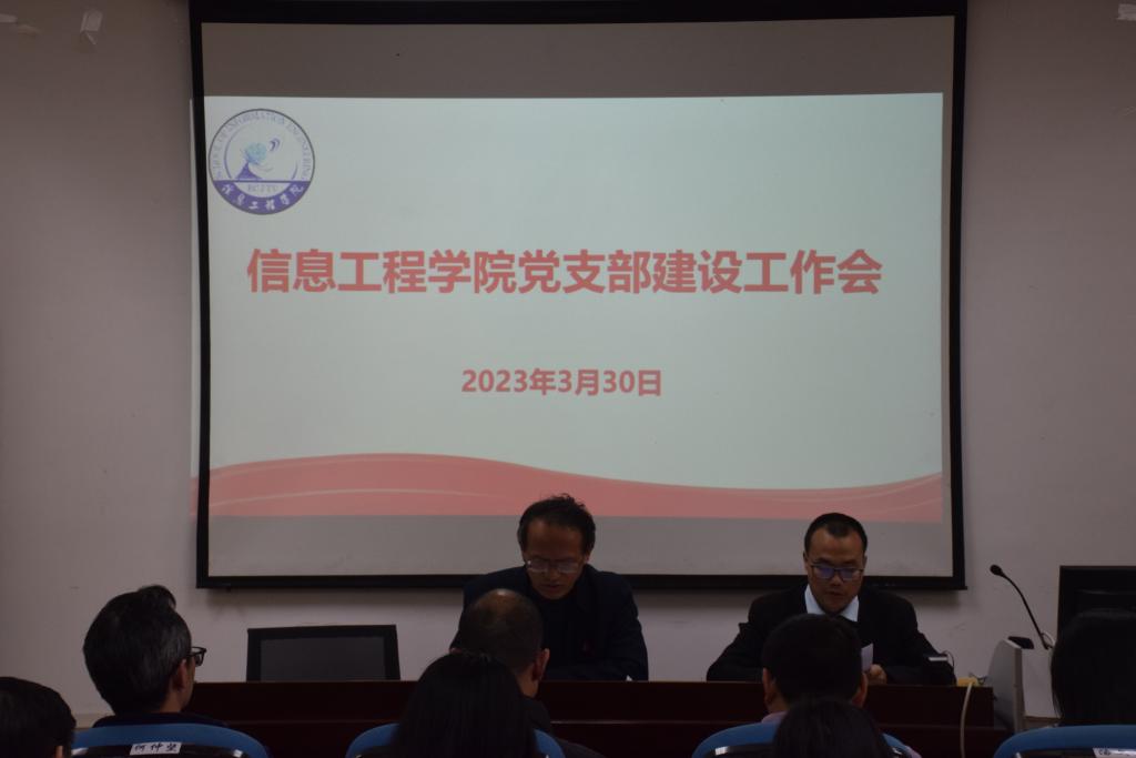 3月30日,信息工程学院于教4栋311召开党支部建设工作会议。院党委书记何仲坚、学院全体党支部委员及党教中心负责同志参会。