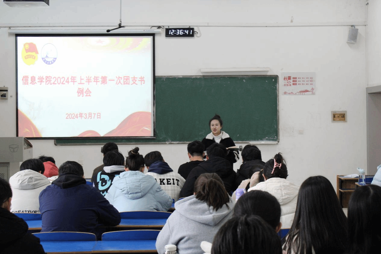 为加强学院学生干部队伍建设,提升学生干部的综合素质,3月7日,信息学院于14栋108召开2024年第一次团支书例会。信息学院学工办副主任兼团委副书记李萌萌、团委洪亚聪老师出席,信息学院全体团支书参加会议。