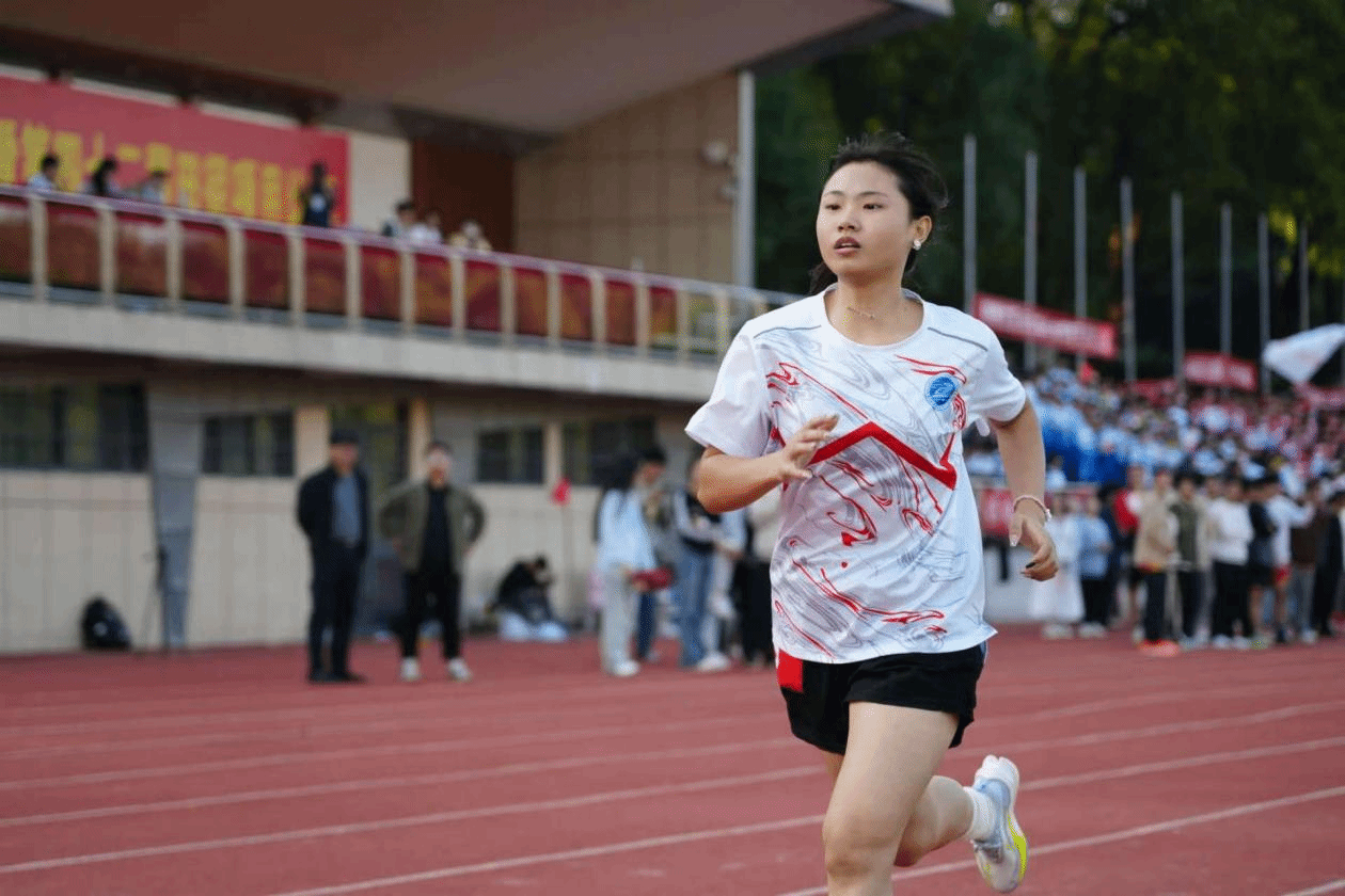 随着发令枪声的响起,何薮怡如离弦之箭般冲出起点,一场体力与意志的较量正式拉开帷幕。在漫长的赛道上,她始终保持冷静与从容,不急不躁,合理调配体力,精准控制节奏。每一次跑过观众席,信工学子温暖的鼓励给予她力量。随着比赛来到最后一圈,何薮怡抓住机会,一举拿下亚军。